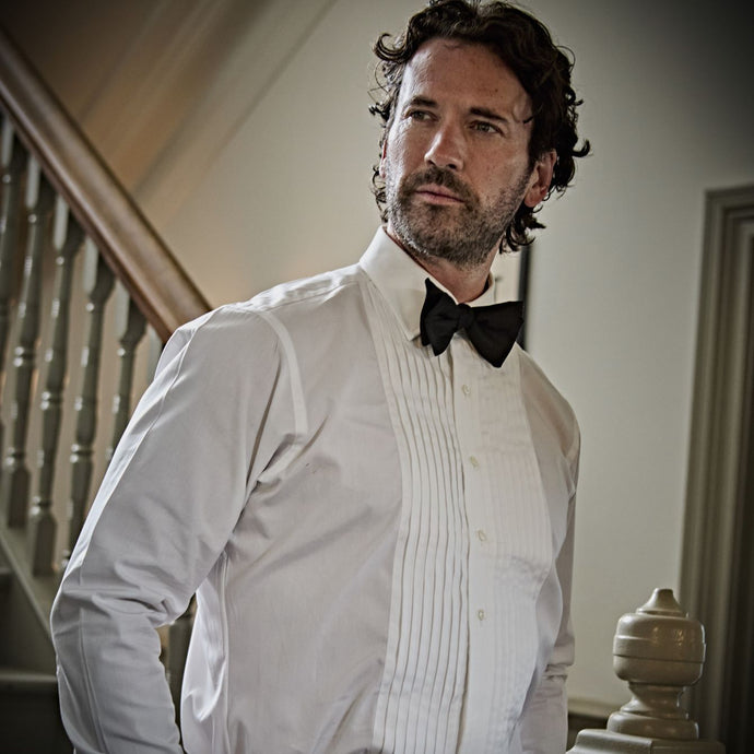 Contemporary Fit Wide Pleat White Cotton Poplin Dress Shirt with Classic Collar & Double Cuff