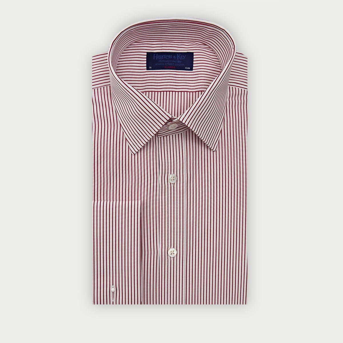 Classic Fit Burgundy Pinstripe Cotton Shirt with Classic Collar & Double Cuff