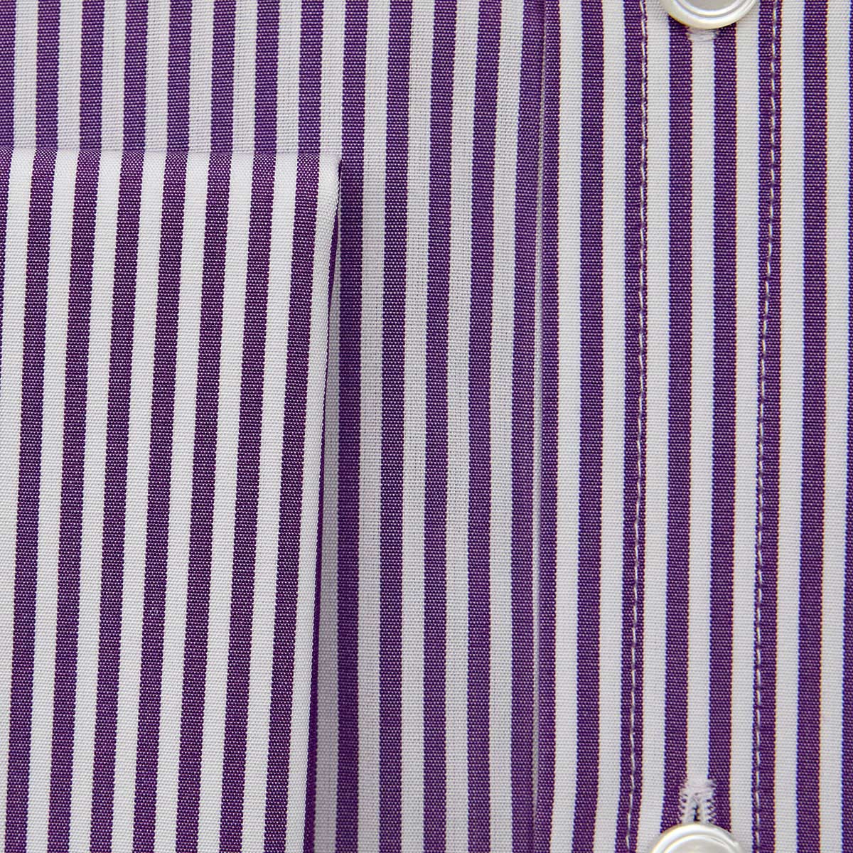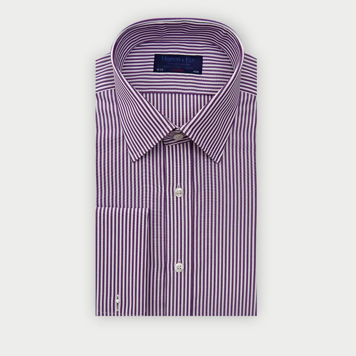 Classic Fit Purple Bengal Stripe Cotton Shirt with Classic Collar & Double Cuff