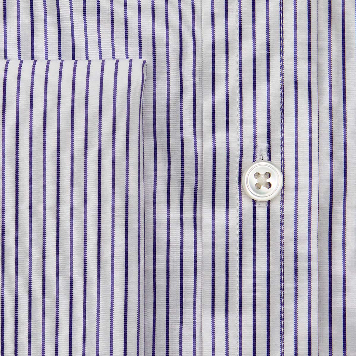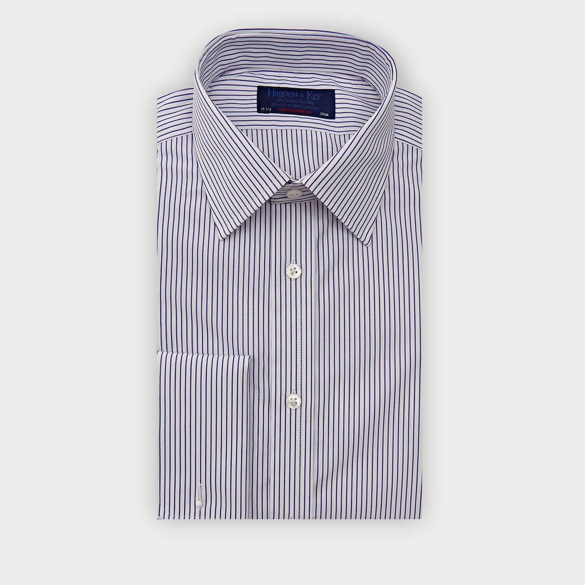Contemporary Fit Dark Blue Pinstripe Cotton Shirt with Classic Collar & Double Cuff