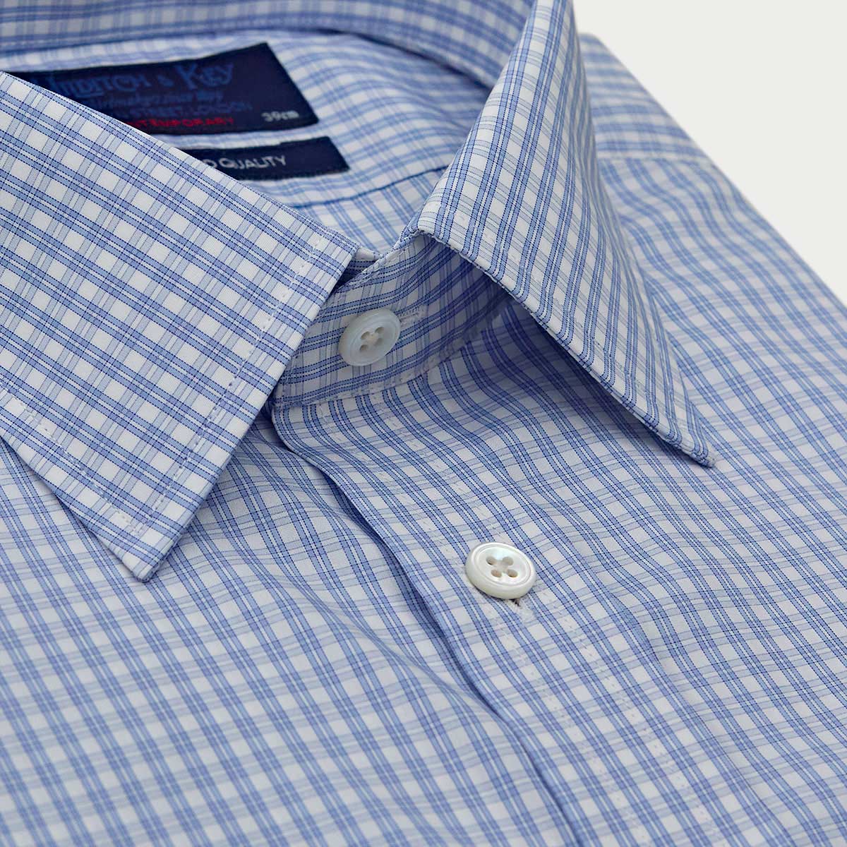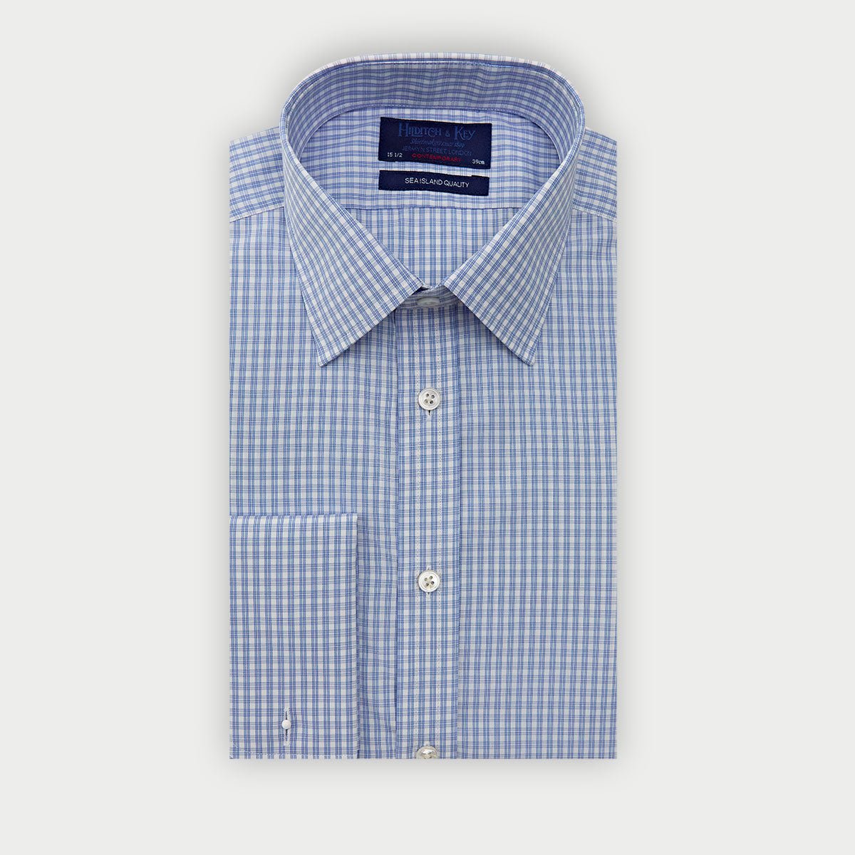 Contemporary Fit Light Blue Double Check Sea Island Quality Cotton Shirt with Classic Collar & Double Cuff