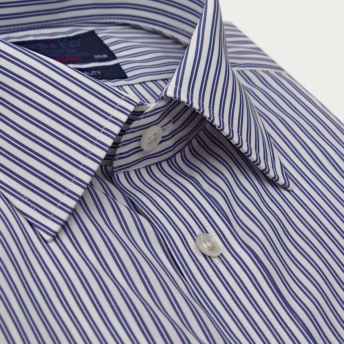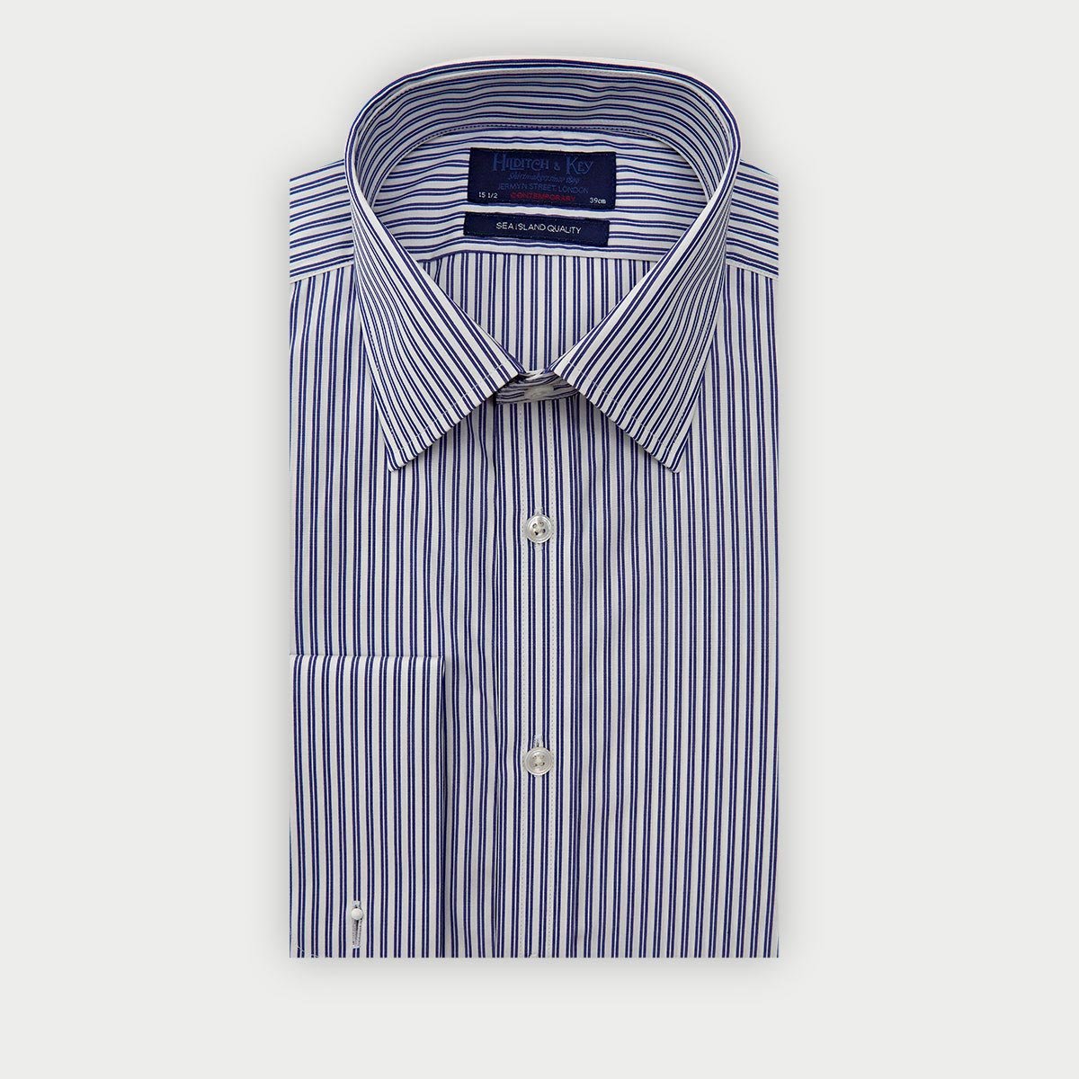Contemporary Fit Navy Double Stripe Sea Island Quality Cotton Shirt with Classic Collar & Double Cuff