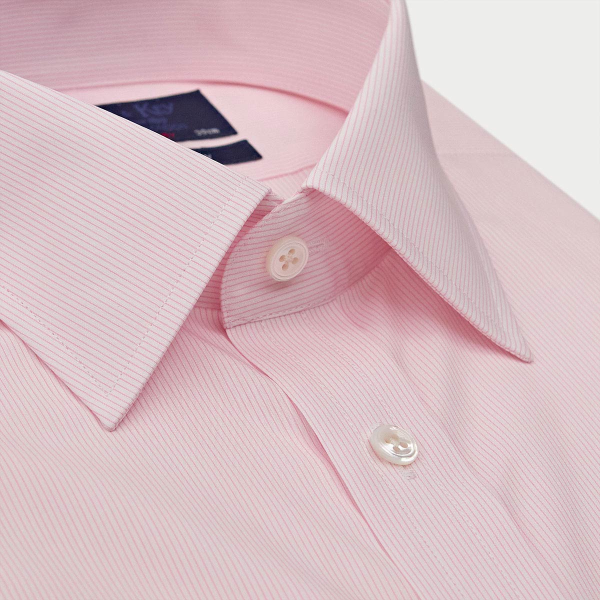 Contemporary Fit Pink Fine Stripe Sea Island Quality Cotton Shirt with Classic Collar & Double Cuff