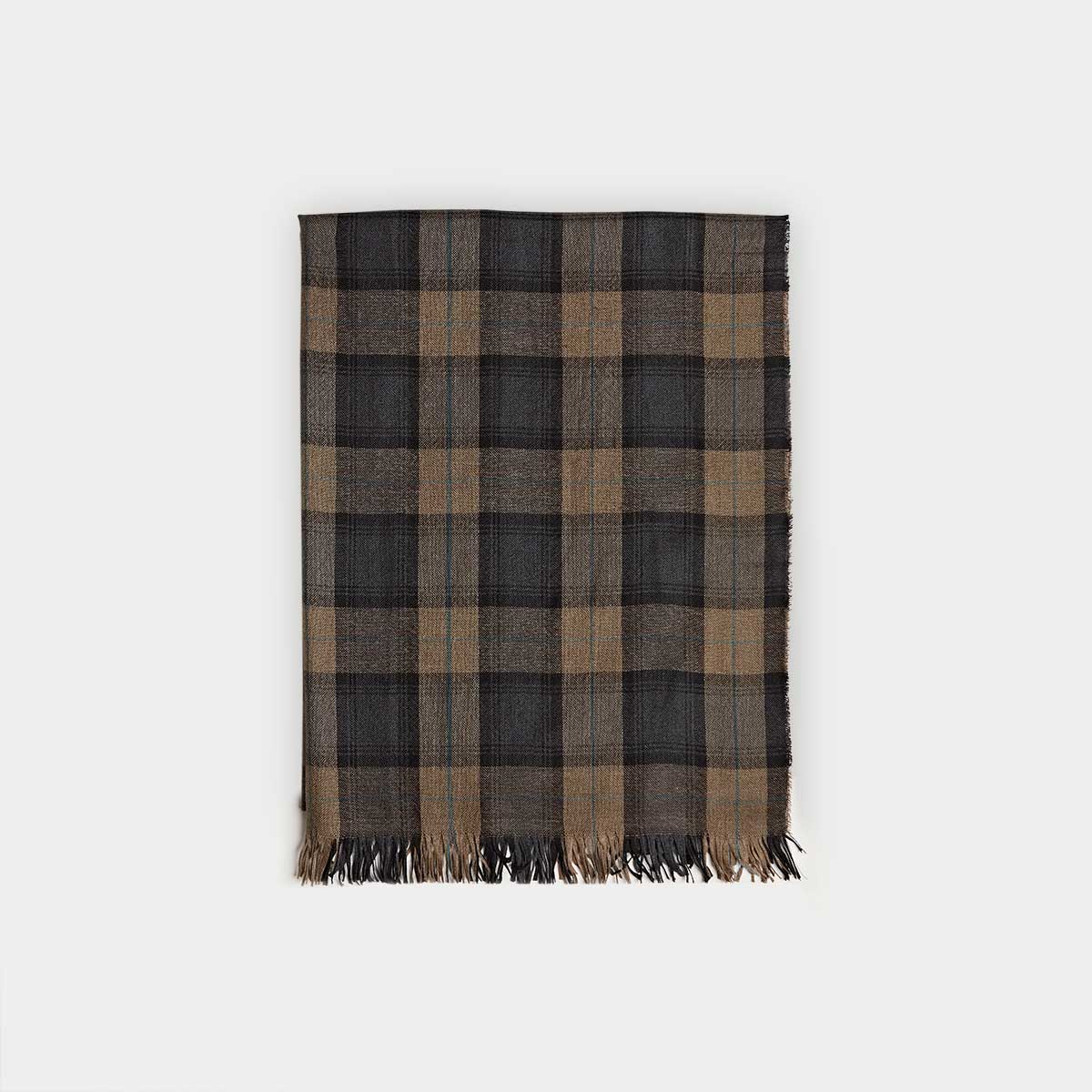 Earthy Tones Large Check Silk & Cashmere Scarf