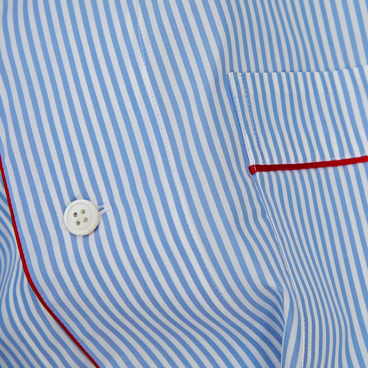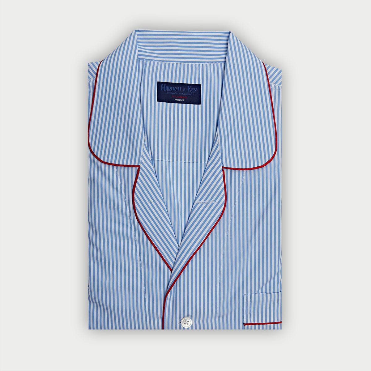 Light Blue Bengal Stripe Cotton Pyjamas with Red Piping