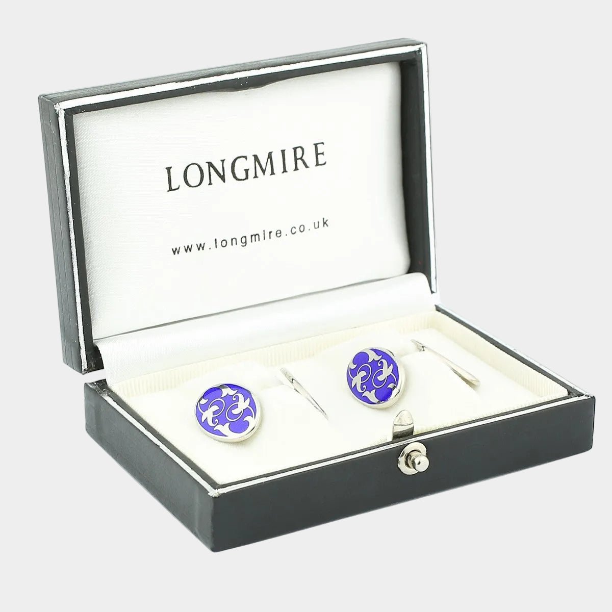 British jewellery house Longmire creates cufflinks designed to be noticed. This evocative design features a winding ivy design crafted using solid sterling silver and blue enamel. Make a glorious sartorial statement on your shirt cuffs.
