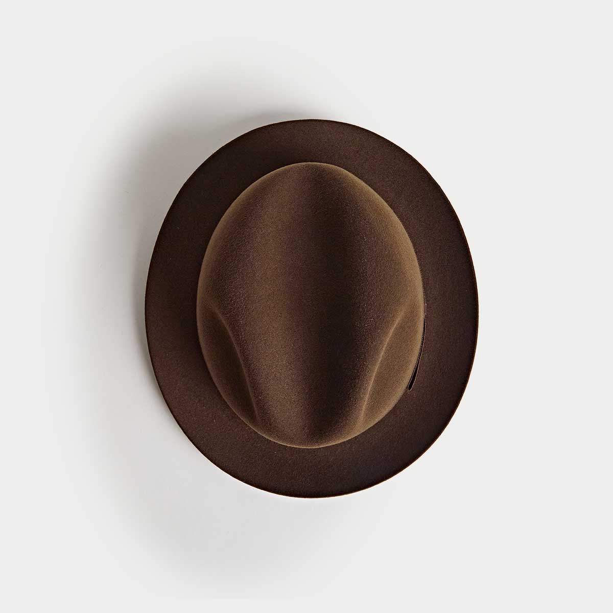 The classic trilby is a design icon, and this version in rabbit fur felt is a fine example of its gentlemanly appeal. It has its origins in the well-heeled society of 19th century London; the hat gets its name from the 1894 novel by George du Maurier entitled ‘Trilby’. When the book was adapted for the London stage, the distinctive hat worn by the lead character attracted such attention from the smart set of the era that the title became synonymous with the hat.