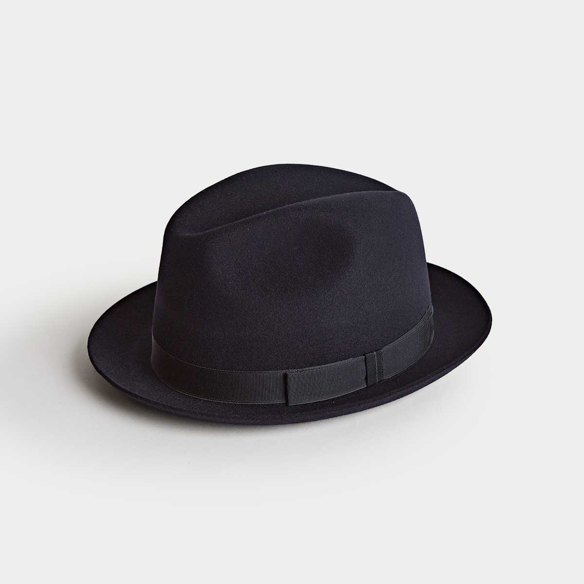 The classic trilby is a design icon, and this version in rabbit fur felt is a fine example of its gentlemanly appeal. It has its origins in the well-heeled society of 19th century London; the hat gets its name from the 1894 novel by George du Maurier entitled ‘Trilby’. When the book was adapted for the London stage, the distinctive hat worn by the lead character attracted such attention from the smart set of the era that the title became synonymous with the hat.
