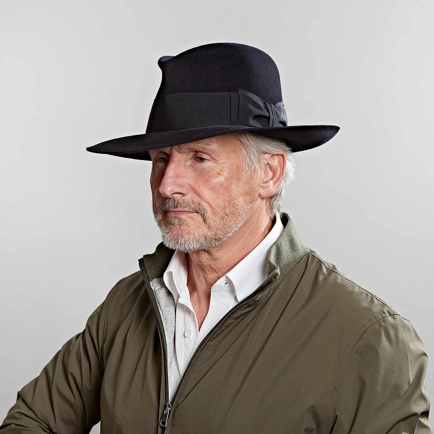 The Navy Blue Poet Fedora is crafted from luxurious antelope fur felt and fully lined for exceptional comfort. Its impeccable construction ensures lasting quality, while the deep navy shade adds a bold, sophisticated touch to your ensemble. Elevate your style effortlessly with this distinguished hat.