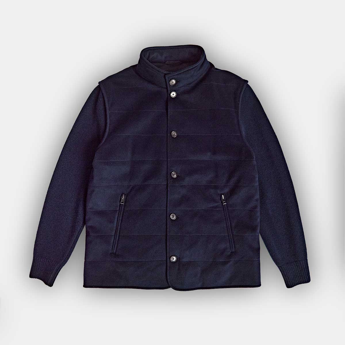 Navy Cashmere Loro Piana Cino Jacket With Knitted Sleeves